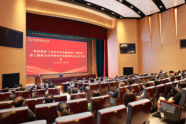 为深入系统学习《习近平谈治国理政》第四卷,10月5日下午,学校召开党委理论学习中心组(扩大)学习会,邀请南京师范大学王刚教授在线作专题辅导报告。报告会由校党委副书记杨雪琴主持,全体党委理论学习中心组成员、各二级单位中心组教师等100人到场聆听。