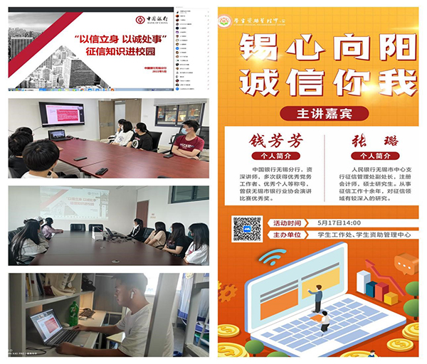 学生资助管理中心以“锡心向阳,诚信你我”为主题,开展征信、诚信知识进校园。从征信的起源、概念、发展历程、重要作用、国家助学贷款与征信、诚信的关系、个人信用报告查询、用途以及征信修复骗局等视角,以实际案例为载体,用通俗易懂的方式,向学生普及征信、诚信知识,教育学生重视个人征信、诚信意识培养,履行个人承诺,争做诚实守信新时代大学生。