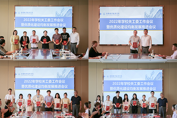 关工委秘书长徐悦和关工委副主任杨雪琴分别宣读了2021年度学校、省和教育部关工委的各项表彰决定并颁发荣誉证书。我校关工委报送的“老少共话奋斗路,助力青年新成长”项目获省教育关工委工作创新奖二等奖;由关工委秘书长江铭主讲的“百年光辉历程”党课获省教育关工委社会主义核心价值观“精品教育项目”案例二等奖;组织参加省教育关工委2021年主题教育读书征文活动获得二等奖一项、三等奖四项。2021年,在学校关工委全体同仁的共同努力下,我校关工委被评为“全国教育系统关心下一代工作先进集体”。