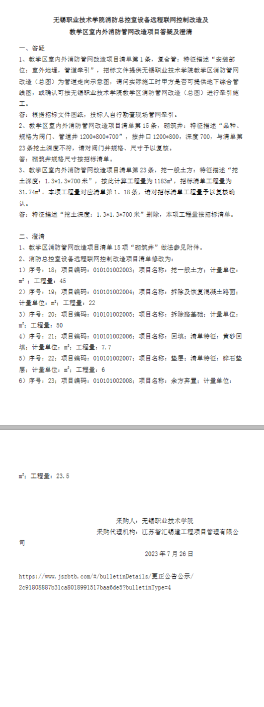 消防总控室设备远程联网控制改造及教学区室内外消防管网改造项目答疑及澄清 发布时间:2023-07-26 18:42:04