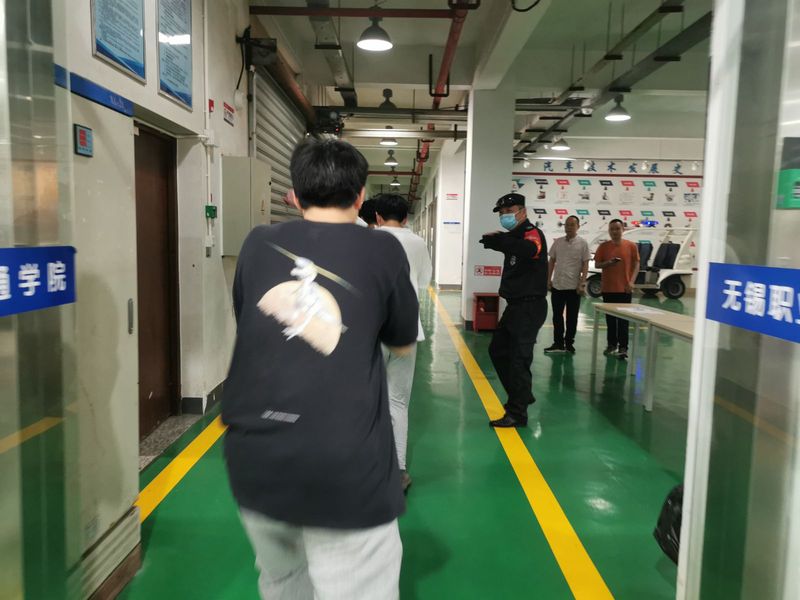 随后,应急演练正式开始,本次应急疏散演练预设火源发生地为工业中心B楼一楼汽车新技术实训室。上午10点06分,现场指挥人员看到浓烟后,工作人员立即拉响消防警报,同时打开实训室消防通道;警报声响起后,实训教师迅速组织学生捂好口鼻、有序疏散逃生;安保人员接到救援信息后,在疏散通道上进行引导,确保实训场所内所有师生全部疏散完毕。