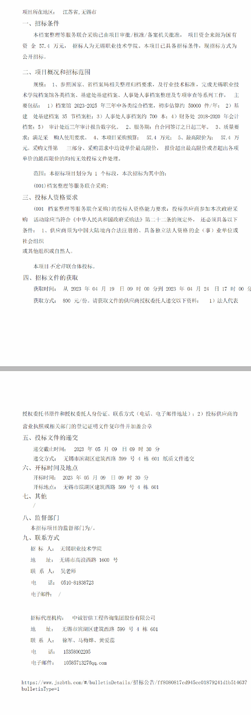 档案整理等服务联合采购(ZB20230012)采购公告 发布时间:2023-04-18 12:34:42阅读量:314 次