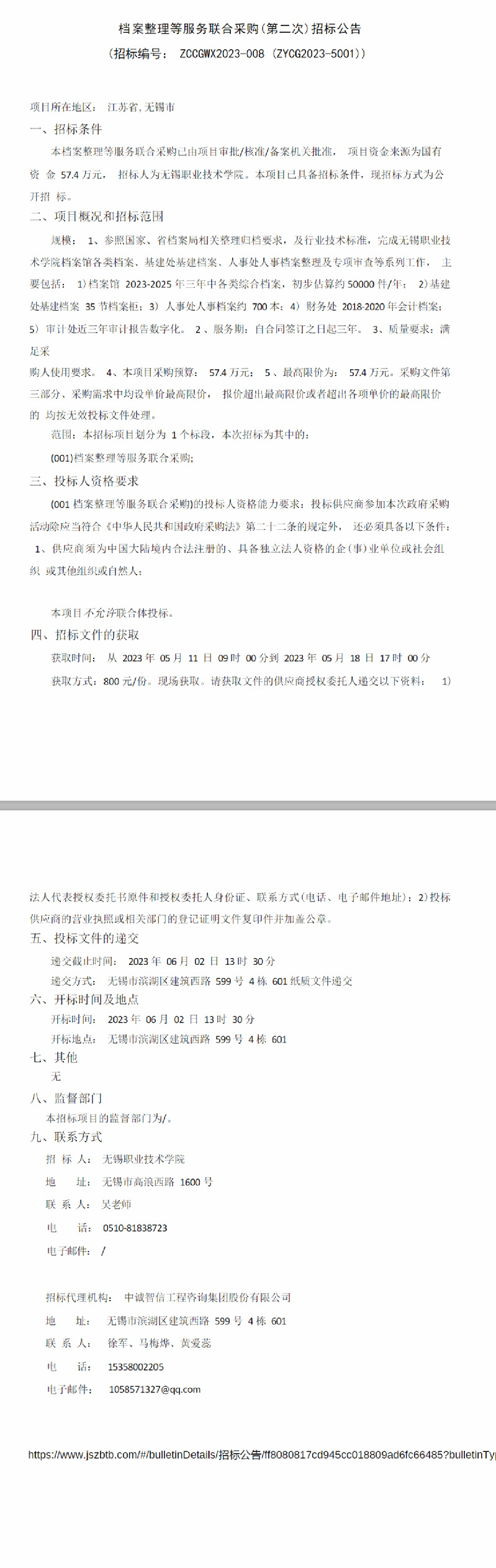 档案整理等服务联合采购(第二次)(ZB20230012(第二次))采购公告 发布时间:2023-05-11 09:00:00阅读量:227 次