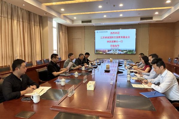 5月27日上午,江苏卓越国际交流教育基金会理事长林跃一行来校调研。校党委副书记杨雪琴、国际交流合作处处长张晓明等相关负责人参与接待。
