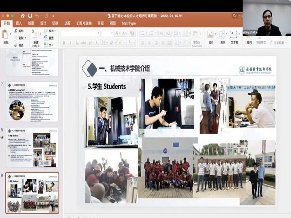本次培训主要以线上方式进行,学校通过精心安排培训方案,选派教学业务骨干,实施全英文讲解,力求达到最佳效果。培训首日,学校以“智能制造,魅力职院”云端直播为开端,带领南非合作院校教师熟悉美丽校园环境,了解学校智能制造特色专业和一流实验实训设施,着重展示学校与南非高教部开展的两期“中-南非”职教跨境人才培养实例;在此后的培训中,学校围绕中非职教实质性合作中的关键难题,如:人才培养方案的制定与互认,疫情期间线上视频教学制作与实施,远程实训环节设计与安排等开展了“基于能力本位的人才培养方案研发”、“How to make a micro lecture?”等专题讲座和交流研讨,充分展示了我校近年来围绕“一带一路”倡议取得的教科研成果,取得了非方骨干教师的信任和肯定。