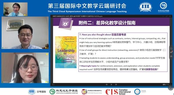 会后我校汉语教师根据大会提供的课堂教学实录短视频进行了集体讨论与解析,开展了在不同教学对象和多元学习背景下,教学内容的选择、教学课件的设计、教学资源的甄别、教学方法和教学语言的使用的探讨。汉语教师团队在云端研讨和集体研究的过程中,进一步意识到应当积极参与汉考国际的各项研讨,并与各界同仁携手同心、行而不辍,坚持以学习者为中心,更好地融合传统与现代教育观,与全球中文教师一道,共同推动国际中文教育高质量发展。