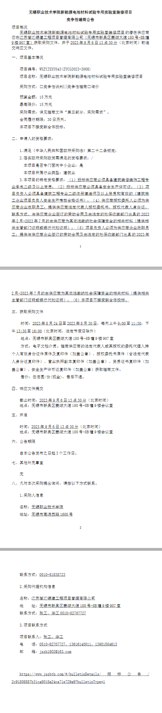 工程研究中心-新能源电池材料试验专用实验室装修(CS20230010)采购公告 发布时间:2023-08-24 09:00:00