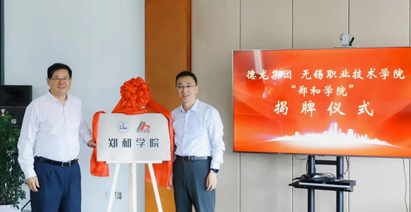 座谈会交流后,我校与德龙公司签订新的战略合作协议。龚方红书记与吴文南副总经理一起揭牌,共建“郑和学院”。郑和学院的创建将充分依托我校优质教育资源,为“走出去”中资企业服务,培养熟悉中国技术、产品、标准和品牌的本土化技术技能型人才,并形成“一带一路”国家认可的专业教学标准和核心课程标准,从根源上解决本土化人才严重短缺的瓶颈,提升企业对外投资合作业务发展,成为江苏职业教育国际化高质量发展的一张新名片。