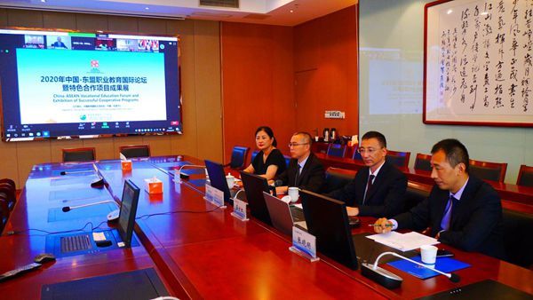 8月26日至27日,由中国教育国际交流协会与中国—东盟中心共同主办的“2020年中国—东盟职业教育国际论坛暨特色合作项目成果展”在线成功举办。来自中国与东盟各国教育行政部门、职业院校、行业企业及有关国际组织的300余名代表参会。龚方红校长、强伟纲副校长受邀参加会议,国际教育学院相关人员一同参会。