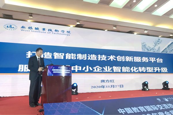 校领导龚方红出席颁奖典礼并代表我校领奖WFCP副主席、交流协会副秘书长沈雪松接过了奖杯,并发表获奖感言随后龚方红校长作了题为《打造智能制造技术创新服务平台服务区域中小企业智能化转型升级》的经验分享,从学校发展现状、技术积累、社会培训情况、校企合作目标介绍了我校在职业教育技术“应用研究与创新”领域的经验和做法,着重展示了新形势下学校加强技术应用研究和教育服务国际化的最近成果,以及学校的国际化展望,受到全场与会人员的热烈掌声。随后,龚方红校长接受江苏国际频道,江苏教育频道采访。