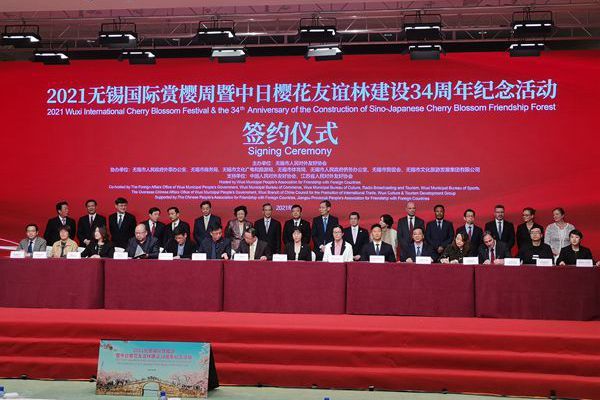 3月25日,2021无锡国际赏樱周暨中日樱花友谊林建设34周年纪念活动在无锡开幕。中国人民友好协会会长林松添,江苏省友协会长柏苏宁,无锡市政府杜小刚市长、无锡市政协主席周敏炜、无锡市政府周常青副市长,市政府秘书长张立军参加活动。新加坡驻华大使,日本、德国、丹麦、埃塞俄比亚、新加坡、捷克、瑞典、爱尔兰、比利时等国驻上海总领事馆的官员,部分国外地方政府驻华机构,外资企业及机构代表等400多位嘉宾出席了开幕大会。
