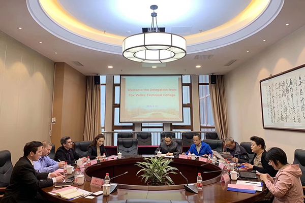 3月19日,美国福克斯谷技术学院自动化技术专业系主任CHRIS DRAGOSH及国际教育项目负责人ARAON M. GORENC一行访问我校,龚方红校长与国际交流合作处、控制技术学院等相关部门和学院负责人接待了代表团一行。