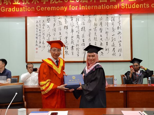 我校作为江苏省首批招收学历外国留学生的高职院校,近年来,留学生培养质量不断提高,“留学锡职”的品牌影响力持续加强。2020届外国留学生在无锡职业技术学院不仅学习专业知识,也对中国文化有了深入的了解。三年制学历生中有14名学生被南京信息工程大学、常州大学录取继续攻读本科;32名毕业生赴中资“走出去”企业或生源国企业工作。42名跨国分段联合培养的本科外国留学生将回国继续本科阶段学习。