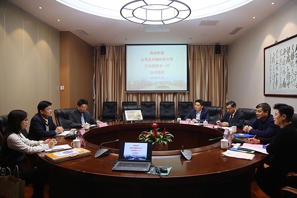 3月15日,台湾圣约翰科技大学艾和昌校长一行3人访问我校,校领导朱爱胜、冯渊及国际交流合作处、党院办负责人接待了访问团一行。